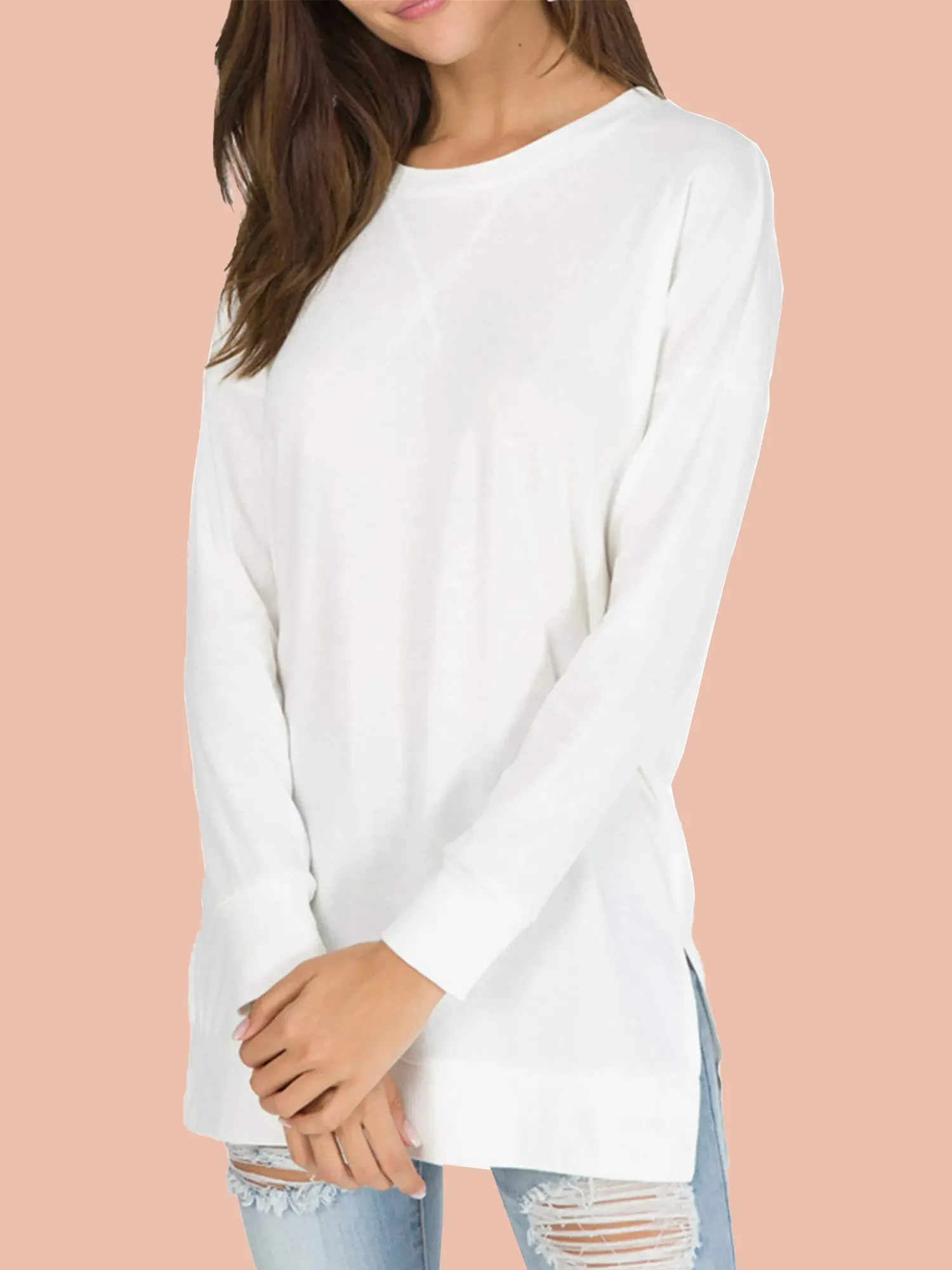 Loose Casual Style,Side Split Long Sweatshirt. Basic and stylish tunic tops, A Must-Have Womens Tops in Your Wardrobe.